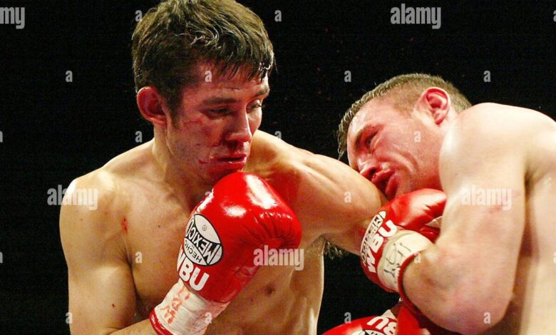Foto de la durísima pelea en la que Javier Alvarez se consagra campeón mundial de la UMB en Manchester. Foto Alamy.