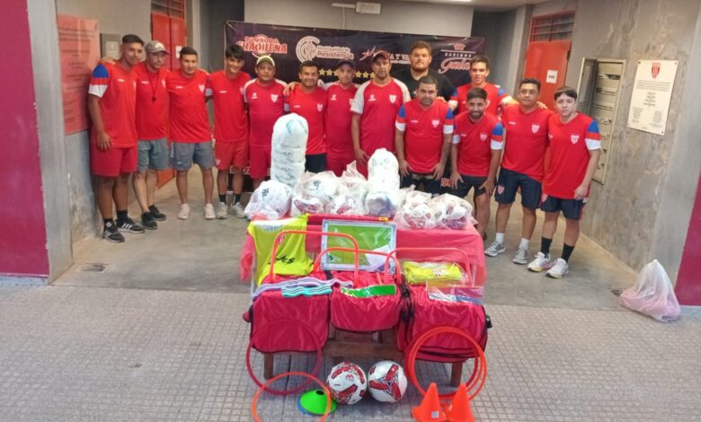 La entrega incluyó indumentaria oficial del club, pelotas, pecheras y aros, elementos esenciales para el entrenamiento y la práctica de los jóvenes deportistas.
