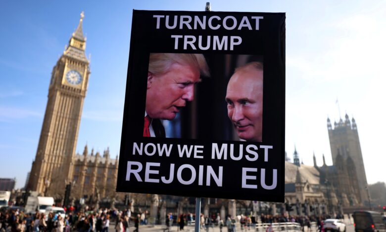 Un manifestante sostiene un cartel con una imagen que representa al presidente de Estados Unidos, Donald Trump, frente a Downing Street, el día de una cumbre de líderes europeos organizada por el primer ministro británico, Keir Starmer, para discutir la seguridad europea y Ucrania, en Londres, Gran Bretaña, 2 de marzo de 2025. REUTERS/Isabel InfantesSi hay algo que he aprendido en el periodismo es que cuando no llamas a las cosas por su nombre real, suele haber una razón: