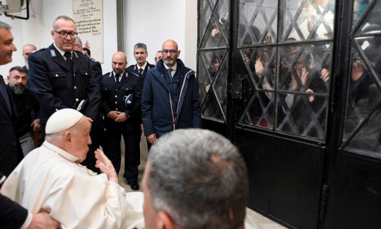 El pontífice caminó acompañado por los guardias hasta la “rotonda” donde convergen los cuatro brazos del centro penitenciario. Desde las celdas y los pasillos, los arrestados se agolparon y gritaron “¡Viva el Papa!” saludándolo con cariño.