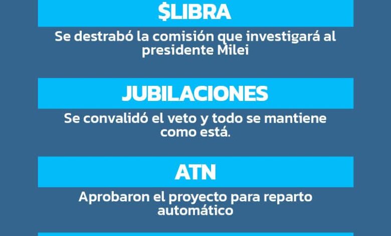 Además, Diputados destrabó la comisión sobre la criptomoneda $Libra y aprobó el proyecto de los ATN (Aportes del Tesoro Nacional) y el cambio de huso horario.