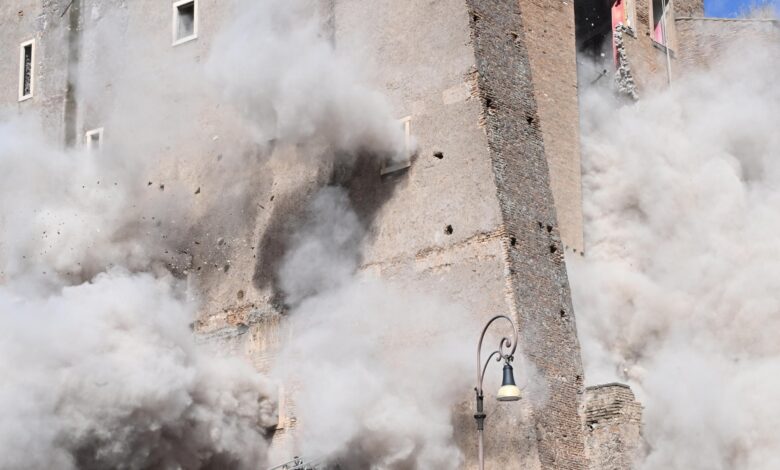 Así fue el momento en el que se derrumbó la Torre dei Conti por segunda vez