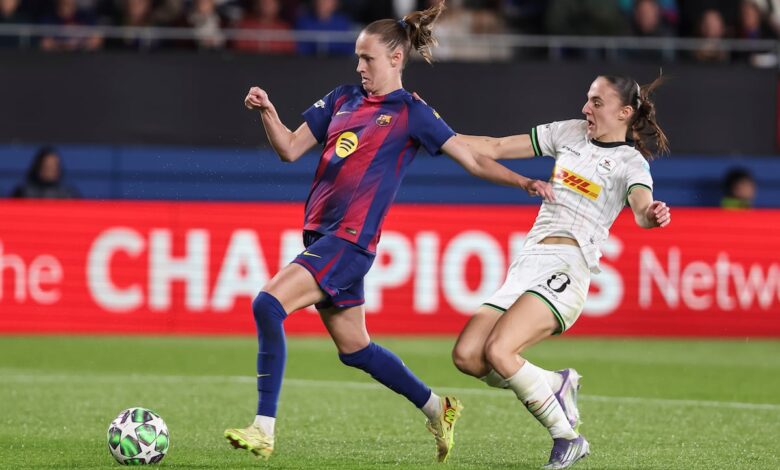 Sorprendió un once muy titular de Pere Romeu considerando la semana que le espera, con tres partidos —Leuven, Real Madrid, Chelsea— en apenas nueve días. Y que el rival, campeón de la Liga belga, era un modesto debutante. Con algunas jugadoras recién salidas de lesión, el técnico azulgrana repitió línea ofensiva con Pina y Vicky López en las bandas, y Graham en la punta, un lugar en el que no terminó de lucirse. En el centro del campo, con la lesión de una pieza imprescindible como Patri Guijarro, una solvente Laia Aleixandri ocupó su lugar junto a Alexia y Aitana.
