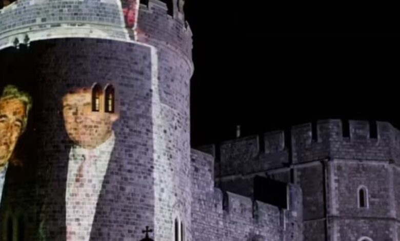 Una imagen de Trump y Jeffrey frente al castillo de Windsor. Foto: ReutersLos nombres de las presuntas víctimas, muchas de ellas menores de edad, y otra información de identificación personal fueron quitados de los mensajes.