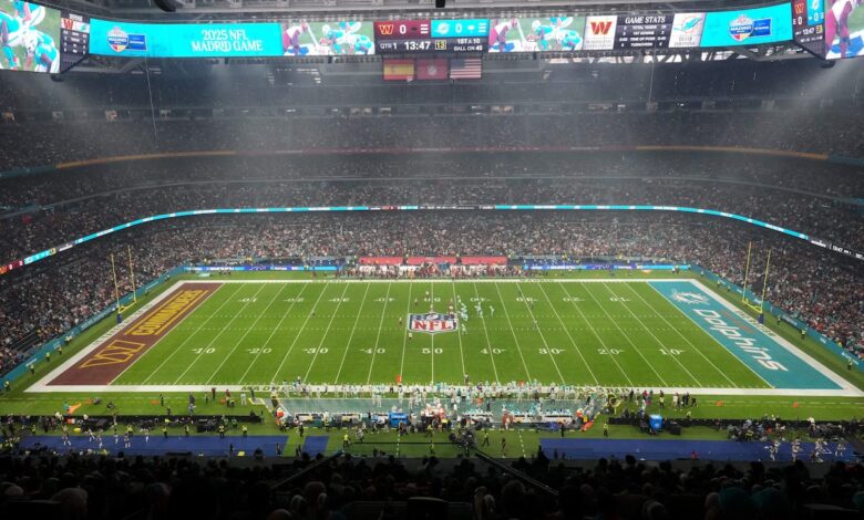 El fútbol americano llegó este domingo a Madrid para quedarse. No solo porque el comisionado de la NFL, Roger Goodell, se comprometió a volver a España el año que viene, sino porque el partido entre los Miami Dolphins y los Washington Commanders, sin grandes estrellas, sin una borrachera de touchdowns, dio al Santiago Bernabéu, a rebosar con 78.610 espectadores, un thriller. El sino de un deporte que puede cambiar de guion en cualquier línea. Como ocurriera siete días atrás en Berlín, la prórroga tuvo que decidir la contienda, para alivio de los de Florida, que mantienen viva su temporada con su cuarta victoria –por siete derrotas– gracias a una patada de Riley Patterson que cerró una victoria por 16-13. Un final idílico para su misión de convertirse en el embajador latino y un buen motivo para volver.
