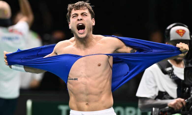 De momento, no le ha ido nada mal. Tumbó a Austria (2-0) e igualmente a Bélgica (2-0), que había fulminado a Australia en la fase clasificatoria y a su llegada a Bolonia sorprendió también a Francia. “Estamos fuertes, tenemos un buen presentimiento. Nos empujamos los unos a los otros y nos ayudamos. Se trata de eso”, proclama Volandri. Solo así podía haber resistido Cobolli a Bergs, quien le tuvo contra las cuerdas. “Ya no contaba los puntos de partido, hasta le pregunté al equipo cuál era el resultado del tie-break porque no lo sabía. Creo que he tenido una gran actitud todo el rato. He creído en mí durante tres horas”, apreció. Antes había cumplido Berrettini. Bingo para él: dos de dos en esta Davis, sin ceder un solo set. Diez triunfos consecutivos.