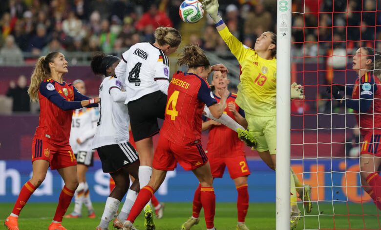 Alemania, la selección que más problemas le causó a España en la Eurocopa del pasado verano, le hizo esta noche el partido más completo de un rival desde el 4-0 que le clavó Japón en el Mundial 2023. La Die Nationalef salió como un vendaval en la fría noche de Kaiserslautern en la ida de la final de la Nations League. Las germanas sometieron a las campeonas del mundo en una actuación impresionante: le robaron el balón y encerraron durante casi todo el partido a la Roja, el equipo que más posesión amasa en el planeta, en su propio campo. El empate para la vuelta en el Metropolitano el próximo martes fue casi un milagro después de que Cata sostuviera al grupo con varias paradas formidables en el uno contra uno.