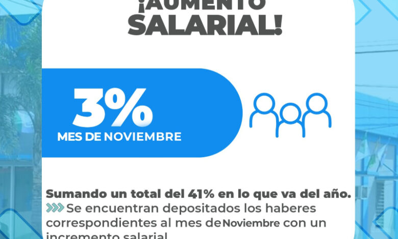 Los haberes correspondientes al mes de noviembre ya se encuentran depositados, incluyendo el incremento salarial.