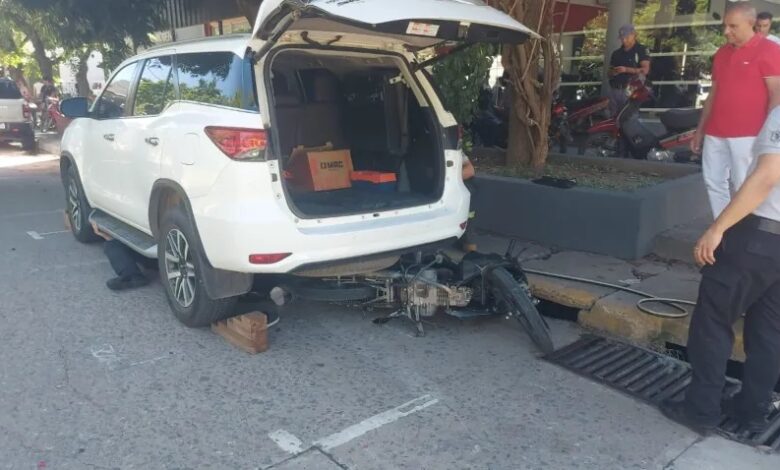 En Resistencia, una motociclista resultó herida tras chocar y quedar bajo una camioneta estacionada.