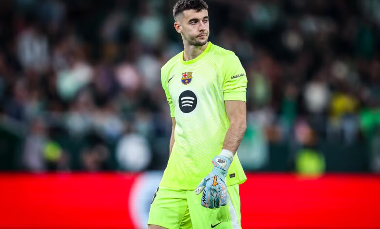Joan García, de principio a fin de un derbi para el Barça. Las paradas del portero azulgrana fueron decisivas para que el Barcelona subrayara su liderato con los goles de Olmo y Lewandowski en el tramo final ante un expansivo Espanyol