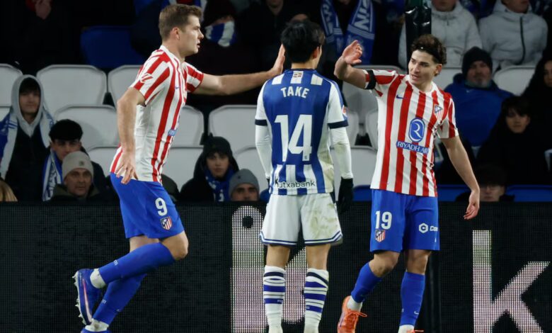 El problema es que Sorloth, pese a su envergadura, no tiene entre sus puntos fuertes dirigir bien las peinadas. Se siente más cómodo corriendo a los espacios que ocupándolos. Ahora se le ve más implicado para bregar con más ímpetu los balones largos y ha mejorado algo su acierto para prolongarlos y conectar mejor con Alvarez o los centrocampistas que se despliegan para sacar al equipo de su campo. Las estadísticas son significativas sobre la producción goleadora conjunta. En estos 10 partidos que han jugado juntos de inicio sólo han registrado una asistencia de gol de uno a otro. Fue ante el PSV en Eindhoven (2-3), quizá junto con la del derbi, la mejor actuación conjunta de ambos. Sorloth le regaló el tanto del empate a uno a Julián Alvarez. Esa noche, la estrella rojiblanca sintió que habían conectado bien. “Estuvo enorme en un partido difícil. Arriba lo ganó todo y nos dio mucho aire”, dijo el atacante argentino sobre su pareja tras la victoria en Eindhoven. El curso pasado, la buscada simbiosis deparó solo dos pases de gol de Julián a Sorloth. Poco para una dupla de un equipo que aspira a ganar títulos.