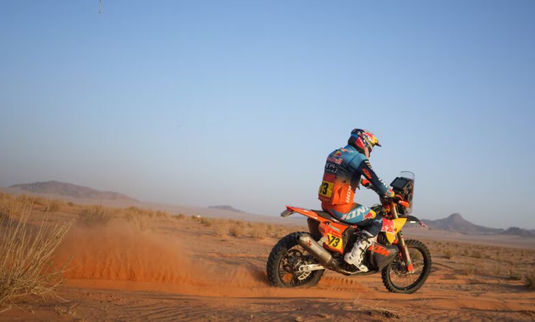 Luciano Benavides (KTM) se llevó la quinta etapa con un tiempo de 4h05m16s y el liderato lo recuperó con maestría durante la ruta del día Daniel Sanders, vigente campeón de la prueba. El australiano de KTM cuenta ahora con algo más de dos minutos de margen sobre el estadounidense Ricky Brabec (Honda) en la general, mientras Schareina se hunde desde la cabeza de carrera hasta la cuarta posición, a casi 12 minutos de su mayor rival por la victoria, todo un mundo cuando los últimos dakares en motos se han decidido por minutos e incluso segundos.