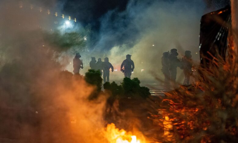 Más tarde esa noche, estallaron enfrentamientos entre manifestantes y agentes que custodiaban el edificio federal que se utilizaba como base para la campaña de redadas en las Ciudades Gemelas, como se conoce a las urbes vecinas de Minneapolis y Saint Paul.