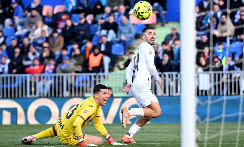 El Valencia comenzó a recular y, en ataque, su juego se inclinaba, como cada semana, hacia la derecha. El equipo prefiere la banda de Luis Rioja a la de Danjuma, un extremo de fuegos artificiales que entretiene más que resuelve. De la comodidad inicial, el equipo de Carlos Coberán empezó a sufrir el empuje del Getafe con el impulso de los aficionados del Coli. No ayudó al Valencia la lesión de César Tárrega, que llegaba delicado y se marchó a la media hora. Corberán prefirió retrasar a Pepelu y colocar a Santamaría en su lugar antes que sacar a un central como Cömert, que sufrió un gran desgaste en el Plantío, en el partido de Copa del jueves. Su mejor ocasión fue un mal despeje de Djené que impactó contra el larguero de David Soria.