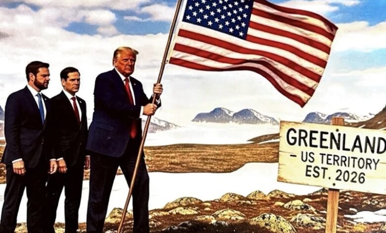 En la foto, el mandatario aparece acompañado por el vicepresidente estadounidense, JD Vance, y el secretario de Estado, Marco Rubio, y se ve un cartel que dice “GROENLANDIA – TERRITORIO DE ESTADOS UNIDOS EST. 2026”, según pudo acceder la Agencia Noticias Argentinas.