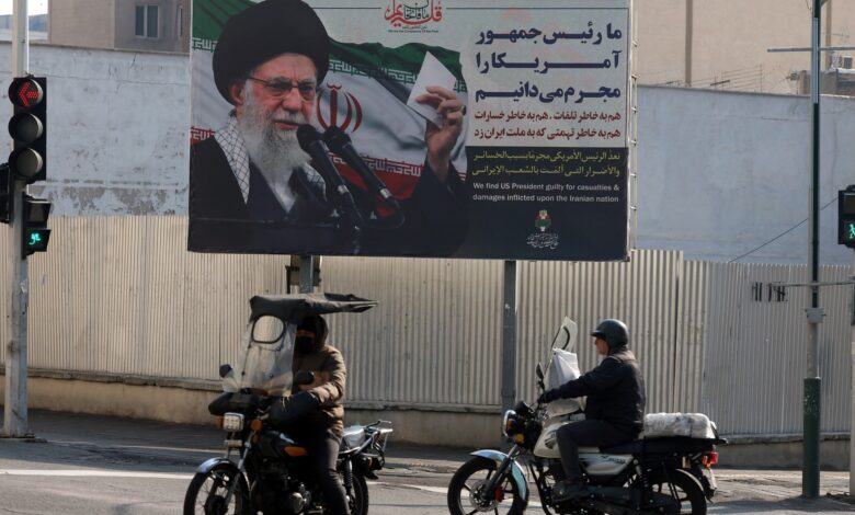 Un enorme cartel contra Israel y Estados Unidos en el barrio palestino de Teherán, la capital de Irán, este sábado. Foto: EFEAdvertencias de Donald Trump