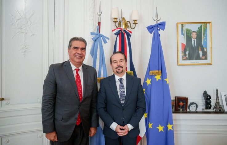 La agenda diplomática continuó con una reunión de trabajo junto al embajador de Francia en la Argentina, Romain Nadal, y su equipo diplomático, en la que se abordaron los desafíos actuales del país y el contexto internacional. El eje central del encuentro fue el Tratado de Generación Económica entre la Unión Europea (UE) y el Mercosur, considerado una pieza clave para la estrategia de inserción externa del bloque regional.