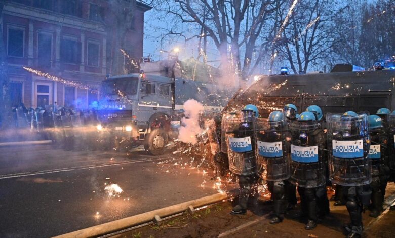 Incluso, el canal público RAI denunció que un equipo fue agredido por los activistas mientras se encontraba informando sobre la manifestación.