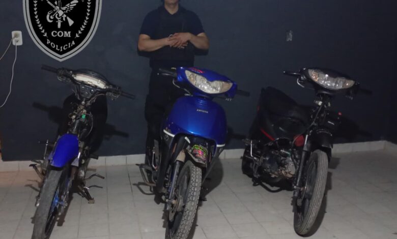 Alrededor de las 04:20 horas, en la intersección de calle San Martín y avenida 25 de Mayo, los efectivos interceptaron a tres jóvenes de 18 años que circulaban a bordo de motocicletas. Tras la inspección de los rodados, se constató que presentaban diversas irregularidades, procediéndose al secuestro de una motocicleta Appia y dos Zanella ZB de 110 cc.