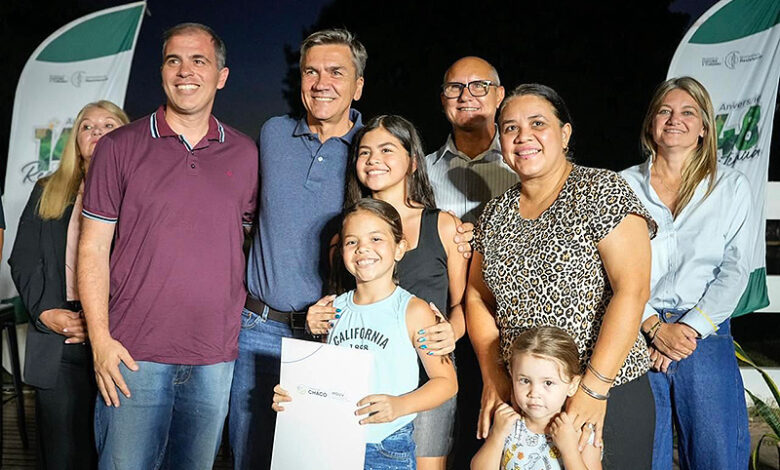 En la noche de este viernes, en el marco del 148º aniversario de la ciudad de Resistencia, el gobernador Leandro Zdero junto al presidente del Instituto Provincial de Desarrollo Urbano y Vivienda (IPDUV), Fernando Berecoechea, al presidente del Concejo Municipal de Resistencia, Alejandro Aradas, al ministro de Gobierno, Julio Ferro; a la secretaria general, Carolina Meiriño y a la presidente de la Legislatura, Carmen Delgado, entregaron títulos de propiedad a familias chaqueñas que aguardaron durante más de 40 años.
