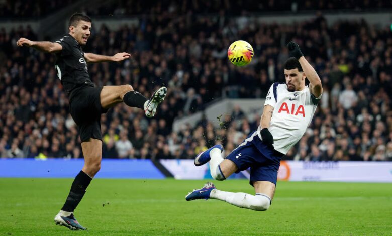 El Manchester City no levanta cabeza en la Premier. Con solo siete puntos conseguidos de los últimos 18 posibles, el empate de este domingo ante el Tottenham les aleja de nuevo del Arsenal. Los de Pep Guardiola, reforzados en invierno con nuevos fichajes, vuelven a dejarse puntos en Liga. Esta vez en uno de los estadios que peor se le da al equipo mancuniano, el Tottenham Hotspur Stadium. Los citizens se fueron al descanso con un 0-2, pero en la segunda mitad apareció Dominic Solanke, el delantero que tanto han echado de menos los Spurs, para igualar la contienda y repartir un punto para ambos conjuntos. El City vuelve a descolgarse de la lucha por la Premier y ya tiene al Arsenal, líder de la competición que venció por 0-4 al Leeds el sábado, a seis puntos.