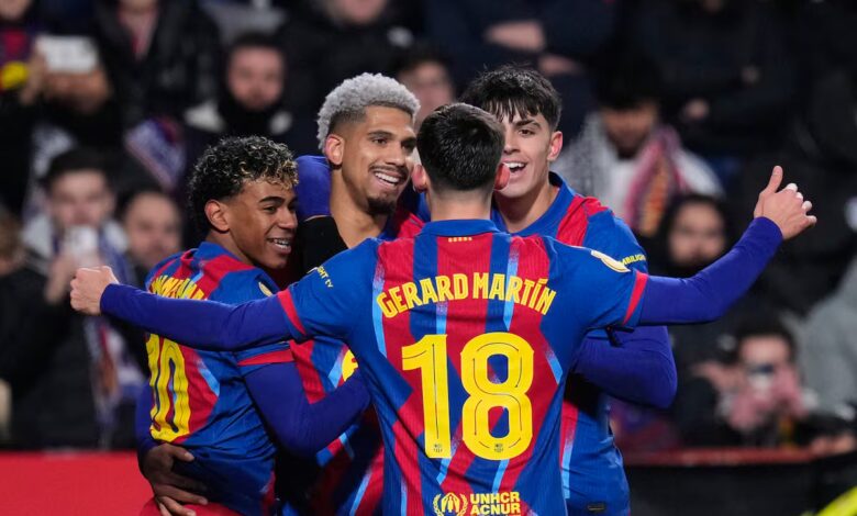 El carrusel de cambios de Flick para visitar al Albacete perseguía un objetivo: equilibrar los minutos de sus jugadores, también sus estados de ánimo. Así se explicó la presencia de Cancelo en lugar de Koundé, como la de Gerard Martín por Balde. Descansó el incansable Fermín López para que Dani Olmo recupere su puesto fetiche como mediapunta, pero pocas modificaciones buscaban un inflamador motivacional como la de Araujo por Cubarsí en la zaga.