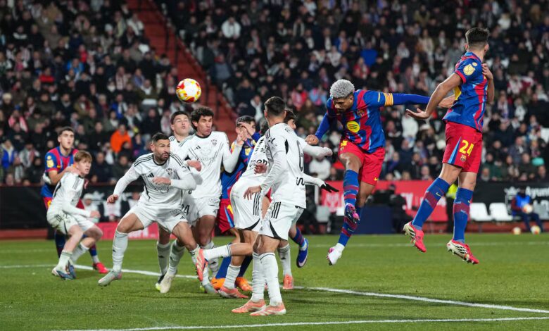 Rashford mantuvo su actividad y solidaridad a la salida del descanso y habilitó a Olmo. El volante, sin embargo, perdonó un remate que era gol o gol y que acabó con un rechazo de Bernabéu. Tampoco disminuyó la carga de Puerta y del Albacete porque la zaga azulgrana no lograba cerrar la portería de un intranquilo Joan García. La igualdad se rompió a balón parado, a la salida de un saque de esquina botado por Rashford y cabeceado en el primer palo por Araujo, poderoso en el área rival, feliz por su titularidad y agradecido con Flick.