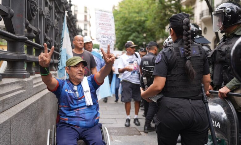 Organizaciones de izquierda y otras agrupaciones de adultos mayores se concentran en el centro porteño. Las fuerzas de seguridad aplicaron el protocolo antipiquetes y hay al menos 4 detenidos.