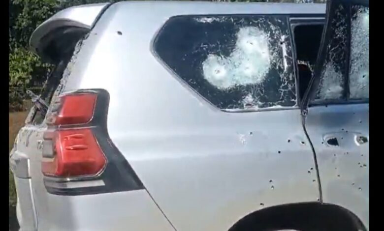 La camioneta, que presentaba cerca de 50 orificios de bala tanto de armas cortas como largas, acabó con los vidrios destrozados, llantas perforadas y daños visibles en la carrocería y la estructura, quedando desviado a un costado de la carretera.
