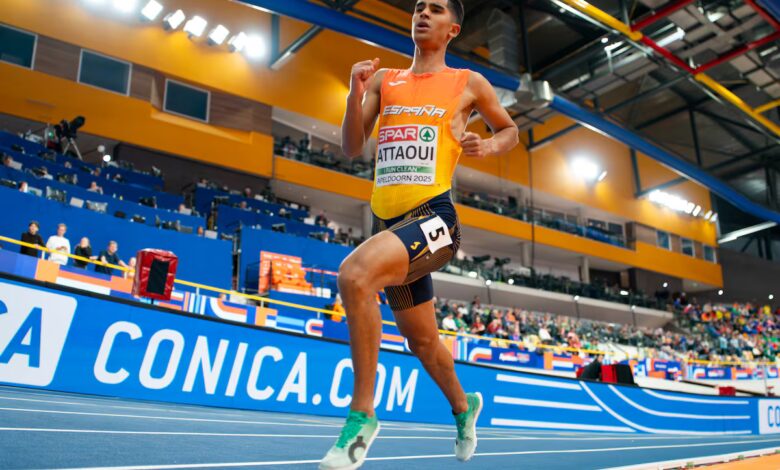 Si la competición de atletismo no fuera un invento anglosajón, en vez de estar divididas las distancias (200m, 400m, 800m…) en fracciones de la milla disputadas en pistas de 400m, los óvalos medirían 500m y las longitudes de las carreras serían fracciones de 1.000m, siguiendo el sistema métrico decimal, y entonces, quizás, Moha Attaoui sería un atleta más feliz aún. “Mi distancia favorita, la que mejor me va son los 1.000m”, dice el atleta de Torrelavega, el español de más nivel en la pista. Nacido en la localidad marroquí de Béni Mellal, Attaoui llegó a España de niño, en brazos de su madre, y a los 24 años ha sido ya quinto en unos Juegos y en unos Mundiales en 800m (su mejor marca en las dos vueltas a la pista es de 1m 42,04s, la 12ª de la historia), y ha corrido los 1.000m (distancia no olímpica) al aire en 2m 12,25s, la tercera mejor marca de nunca. Y este viernes (21.10, streaming en RTVE Play), en la pista cubierta de Gallur (Madrid) intentará igualarla, o al menos bajar de 2m 14,20s para batir el récord del mundo bajo techo y en pista de 200m. Después de los de Grant Holloway en 60m vallas (7,29s en 2021) y Yulimar Rojas en triple salto (15,43m en 2020), sería la tercera plusmarca mundial conseguida en la instalación madrileña durante la celebración de su mitin en febrero.