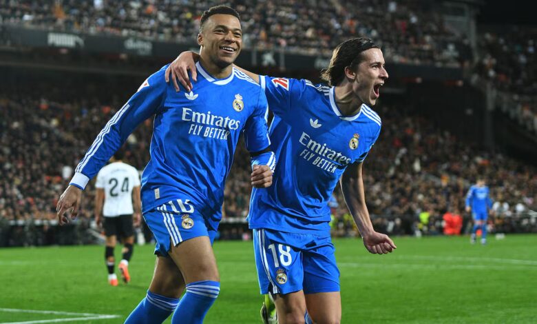 El Real Madrid no necesita demasiadas ideas para encontrarse con el gol, y así continúa su persecución del Barcelona en la Liga, de nuevo un solo punto por detrás del fulgurante equipo de Flick. En un duelo de urgencias divergentes, despachó otra función espesa que al comienzo no apuntaba a nada muy prometedor. Pero con los tantos de Carreras y Mbappé escapó con premio de una cita a la que llegaba acuciado por la solidez del Barça, contra un Valencia que vive ahogado por la angustia de la ausencia de rumbo en los despachos y en el campo.