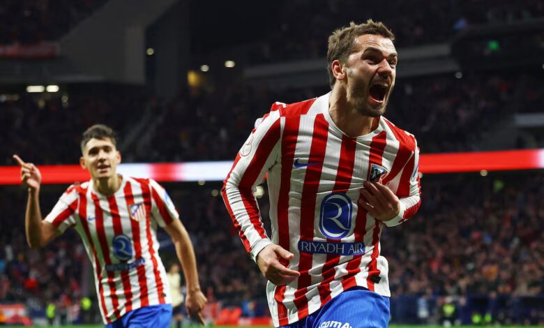 Dos goles en quince minutos, dos sopapos a un equipo en el que Olmo, falso extremo zurdo, trataba de hacer daño por dentro y Lamine trataba de sostenerlo con su arte. En un barullo en un saque de esquina, Fermín se revolvió y sacudió el travesaño de Musso. El meta argentino, otra apuesta de Simeone al mantenerle pese al recuerdo de su actuación en el partido de vuelta de las semifinales del curso pasado, se resarció ganándole un mano a Fermín. El Barça quería, pero el Atlético más, con Llorente corriendo donde no llegaban las piernas Koke y Griezmann a los que escoltó. De esa terna inicial de centrocampistas no formó parte Baena, otra decisión arriesgada del Cholo para configurar un equipo que parió otras dos excelsas jugadas. Molina jugó en largo para Griezmann, este con un toque puso a correr a Giuliano. Por el medio, Julián se presentó en la frontal del área y en vez de ejecutar a Joan García, le cedió el gol a Lookman. De nuevo, una transición de libro, iniciado por un costado y culminada por el otro. El 3-0 en algo más de media hora ya fue demasiado para Flick, que sentó a Casadó, con amarilla, y jugó la baza de la intimidación de cazagoles de Lewandowski. El cambio delató que el Barça iba camino de la debacle. Y se consumó con otra secuencia prodigiosa de pases que por fin pudo culminar Julián Alvarez con un golpeo violento y ajustado muy suyo que rompió con su eterna sequía. Cuatro goles del Atlético que pudieron ser más y le dejan a un paso de la final de Copa 13 años después, con un segundo tiempo en el que el VAR anuló un tanto de Cubarsí y no pudo revitalizar a un Barça, que perdió a Eric García por expulsión, fue aplastado por el rock and roll de Atlético. El fútbol que siente y más disfruta su hinchada.