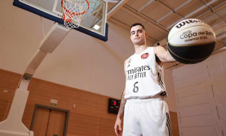 Alberto Abalde acaba el entrenamiento del Real Madrid con una tirita blanca en el párpado derecho. Es la pequeña herida de guerra que luce el alero gallego de 30 años y 2,02m en medio de un calendario que no da tregua. Mañana comienza la Copa del Rey en Valencia y al conjunto blanco le espera una dura batalla para empezar, un cruce de cuartos de final contra el campeón vigente, el Unicaja Málaga. Abalde está listo para las trincheras como siempre desde que llegó al equipo madridista en 2020 tras pasar por el Joventut y el Valencia. Ese espíritu guerillero en medio de tanta estrella es apreciado en el vestuario. Fuera, estudia para ser entrenador y cuida de su hija de ocho meses, que le acompañará en Valencia. Y cuando puede, vuelve a casa y al mar.