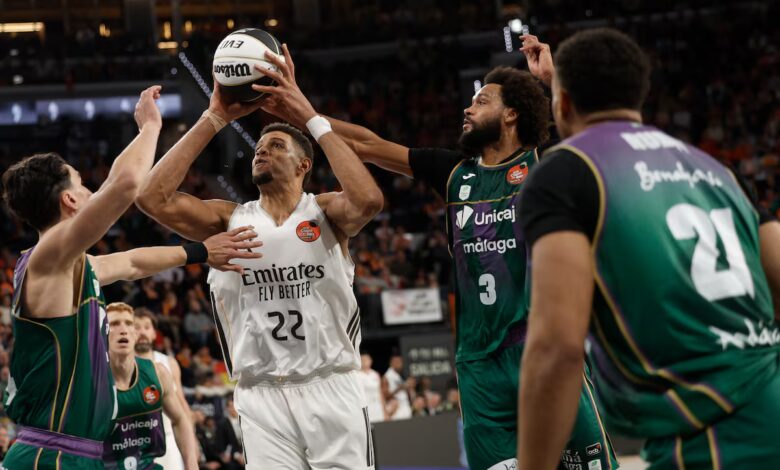 El Real Madrid tumbó al campeón de la Copa para citarse en semifinales con el anfitrión. El conjunto blanco despachó en cuartos al Unicaja Málaga con una solvencia inesperada en cualquier pronóstico y se ha citado este sábado con el Valencia en su caldera del Roig Arena para discutir un puesto en la final. No hubo partido en la reedición del encuentro decisivo del año pasado porque los blancos mandaron de principio a fin y los malagueños apenas dijeron ni mu, muy rebajados por las bajas (Tyson Pérez, Tillie, Kravish) e incapaces de mirar a la cara a un rival muy serio. Ese Madrid-Valencia promete emociones más fuertes en un escenario a la altura.
