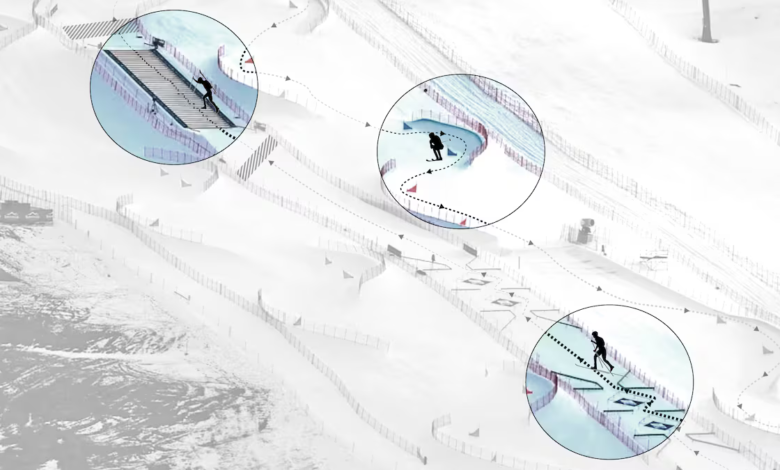 En la última parte, bajan esquiando por un trazado con obstáculos, giros y elementos técnicos. Este descenso, de algo más de 400 metros, requiere habilidad porque el terreno es más empinado y los esquís son ligeros y específicos para montaña, no para velocidad pura de descenso.