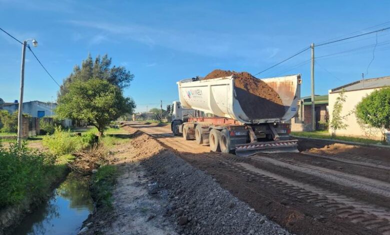 En materia hídrica, los equipos municipales trabajaron en la recolección de tierra proveniente del cuneteo en la intersección de las calles Rawson y San Lorenzo, con el objetivo de facilitar el drenaje pluvial y evitar anegamientos que puedan afectar tanto a viviendas como a la circulación vehicular en períodos de lluvias intensas.