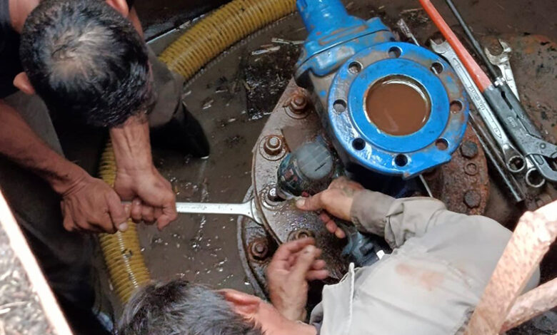 Se realizaron trabajos de reparación sobre una conexión del Primer Acueducto, específicamente en la válvula de derivación que abastece a la localidad de Puerto Bastiani.