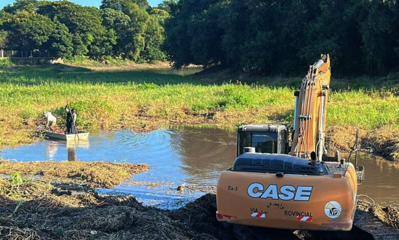 Equipos técnicos de la Administración Provincial del Agua junto a la Municipalidad de Resistencia llevan adelante un operativo de limpieza del Río Negro en el sector ubicado frente al Club Regatas Resistencia, con el objetivo de optimizar la circulación del agua y contribuir al mantenimiento del cauce.