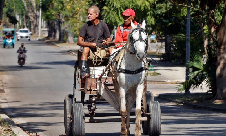 Una mujer empuja un vehículo este martes, en La Habana (Cuba). Foto EFECerca de ella, José Rosell, de 81 años, ha venido a enviarle comida y productos de aseo a su hijo de 55. Éste, un taxista de Santiago de Cuba, se ha quedado sin trabajo por la escasez de combustible, y su padre teme no poder seguir ayudándole.