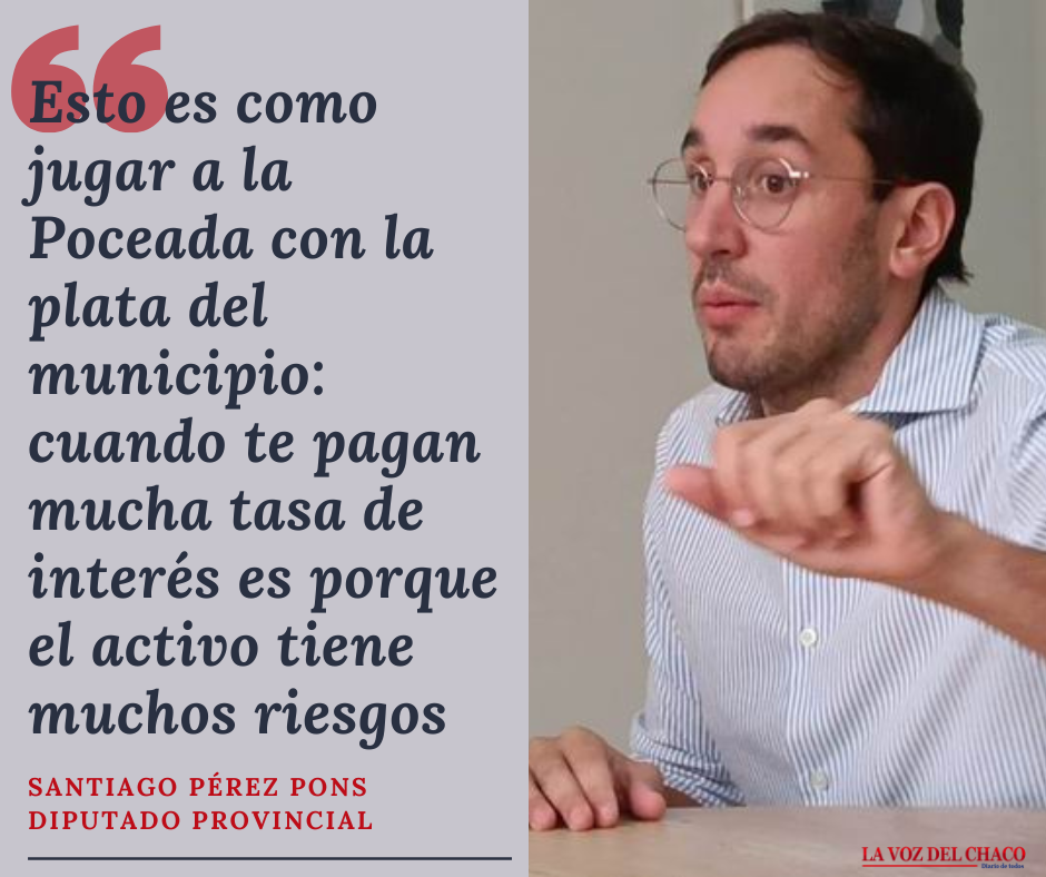 Entrevistado por LA VOZ DEL CHACO, Pérez Pons detalló que las operaciones financieras fueron realizadas con fondos municipales mediante instrumentos de riesgo: «Acá se llevaron adelante operaciones de riesgo con fondos municipales, firmadas por el intendente, firmadas por su secretaria de Economía y firmadas por su secretario de Gobierno, Diego Landriscina».