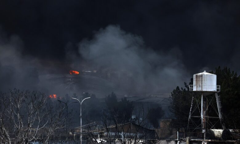 Una de ellas es el Depósito de Petróleo del Noroeste de Teherán, ubicado en el barrio de Shahran, donde a media mañana continuaba con un fuego incandescente que emitía una columna de humo que parecía infinita.
