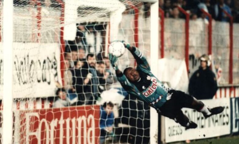 Wilfred Agbonavbare quiso quedarse cerca de esa gente los seis años que jugó en Vallecas. En el barrio, el portero nigeriano se sentía protegido de aquellas hordas de energúmenos que, rabiosos porque parecía que no había forma de meterle un gol, ni siquiera el Madrid y ni siquiera de penalti, le gritaban: “¡Ku, Klux, Klan! [sangriento grupo supremacista nacido en EEUU]» o “¡Negro, cabrón, recoge el algodón!“ sin consecuencia alguna. El documental Eterno Wilfred (Movistar Plus +) muestra una colección de sus mejores intervenciones, colgando balones al área contraria en un saque de puerta; multiplicándose como un pulpo entre los tres palos para parar tres envestidas seguidas a esa distancia en la que portero y delantero se miran a los ojos; volando con su 1,90 de estatura dentro de la portería en una palomita imposible para despejar el zambombazo de una estrella del Madrid… Las imágenes sirven de homenaje, pero también para subrayar lo dramático de lo que vino después.