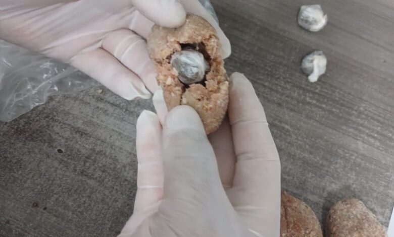 Durante el control de alimentos entregados por una mujer, el personal policial detectó cuatro envoltorios con sustancia vegetal escondidos en albóndigas. Ante ello se dio intervención a la División Drogas, que realizó la prueba de campo correspondiente.