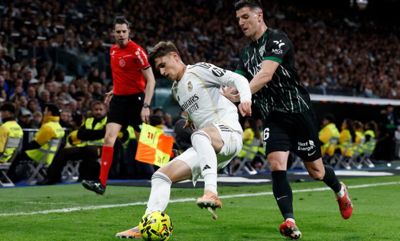 Si Kylian Mbappé continúa sin estar para jugar, Valverde sigue ahí. Metió en Vigo la semana pasada en el último minuto, atormentó con un triplete al City y ventiló al Elche. Siete dianas suma en toda la temporada y cinco han sido en la última semana. De bingo en bingo. Sus tres tiros a puerta ante los citizen valieron tres goles y los dos contra el Elche derivaron en el 2-0 con el que el Madrid alcanzó el descanso. Máxima renta para el mínimo esfuerzo colectivo. Suficiente para que antes de la hora de juego el uruguayo recolectara la ovación de la masa, guardara fuerzas para el martes, y que por el césped comenzara el desfile de canteranos.