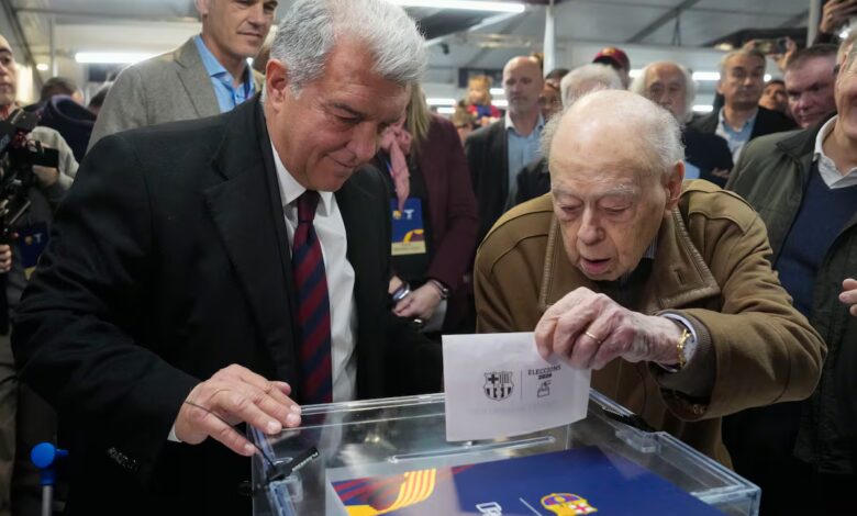 Joan Laporta, entre Aitana Bonmatí y Jordi Pujol en las elecciones del Barcelona | Fútbol | Deportes