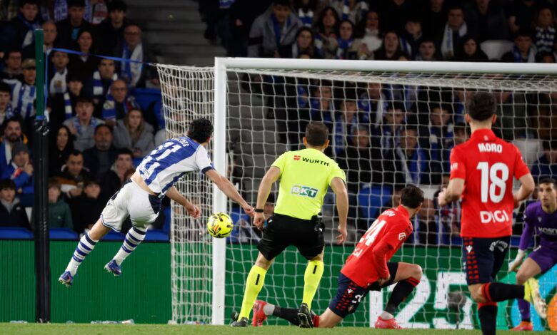 Ante Osasuna, un rival al que el conjunto blanquiazul parece tenerle tomada la medida esta temporada, la Real volvió a confirmarlo. No hace tanto ya le dejó fuera de la Copa en una noche dolorosa para los navarros, después de que estos desperdiciaran una ventaja de 0-2 cuando apenas quedaba un cuarto de hora para el final. Esta vez, también con Anoeta como escenario, fue el conjunto rojillo el que avisó primero. Un remate de cabeza de Víctor Muñoz se estrelló en el larguero de la portería defendida por Álex Remiro, un susto que no alteró demasiado el guion. Porque la Real, paciente y segura de sí misma, terminó encontrando el acierto.