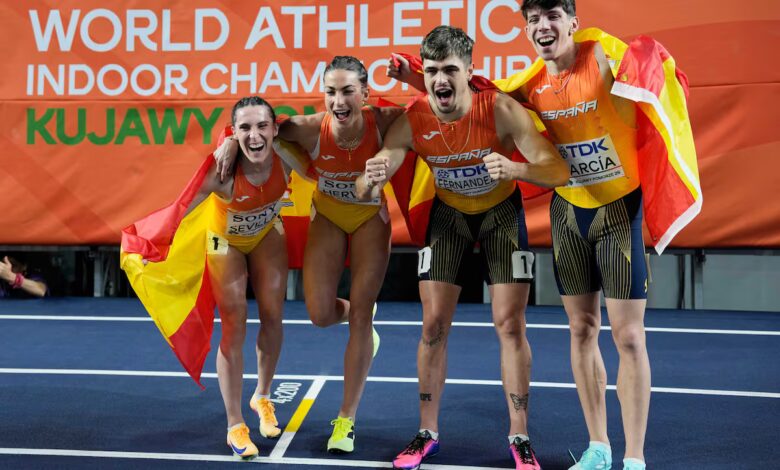 Markel Fernández, Paula Sevilla, David García y Blanca Hervás consiguieron este sábado la plata en el relevo mixto 4×400, una prueba que se estrenó en el programa de los Mundiales de atletismo en pista cubierta en esta edición de Torun (Polonia). El cuarteto español, que estableció su mejor marca de la temporada con 3m16,96s, solamente cedió ante Bélgica (3m15,60s), que dominó toda la prueba. El bronce fue inicialmente para Jamaica con 3m17,13s, pero minutos después fue descalificada por cambio irregular en el polémico primer intercambio, por lo que cerró el podio Polonia (3m17,44s). Es la primera medalla que logra España en la cita que se celebra en la región polaca de Cuyavia y Pomerania.