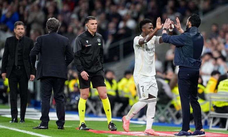 A la espera de que regrese a todos los efectos el Madrid con todas las estrellas juntas, el equipo inevitable de estos tiempos, con Mbappé y Bellingham de inicio, los jefes en este Real gregario que ha salido de las tinieblas continuaron siendo Vinicius y Valverde. Los tantos y el empuje de ambos pesaron más que los golazos del Atlético. Pero como los caprichos del fútbol son así, los blancos tuvieron que defender el 3-2 ya con Kylian y Jude en el césped tras la expulsión del uruguayo en el minuto 77. Las dos estrellas con las cuales el grupo ha tenido problemas en muchos momentos para encontrar la solidez se vieron abocadas a proteger la victoria en inferioridad.