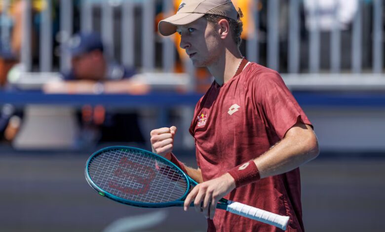 Quién lo hubiera dicho hace tan solo unos días: lo que no consiguió Carlos Alcaraz, lo hizo Martín Landaluce, el gigantón de 20 años, con cara de niño y rizos dorados que sueña con hacer cosas importantes en el tenis y que, de momento, ya ha dejado un rastro histórico en el Masters 1000 de Miami con su acceso a los cuartos de final. No lo conseguía un tenista con un ranking tan bajo —151º hoy día, aunque virtualmente es el 105º del mundo— desde 1994, cuando sorprendió el local Jim Grabb, entonces 185º. Lo logra ahora él, verdugo del hombre que tumbó dos días antes al número uno (2-6, 7-6(6) y 6-4, tras 2h 28m) y ahora más cerca de romper la barrera de los cien mejores del circuito. Así que brinca, festeja, lo saborea. No es Sebastian Korda (25 años y 36º del mundo) la alegría de la huerta, pero parece que le ha pasado un camión por encima.