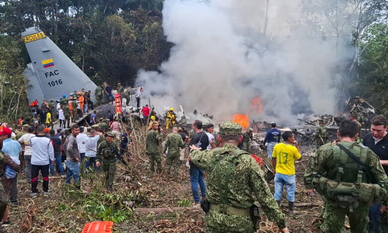 El avión Hércules adquirido en 2020 se precipitó a tierra el lunes a un kilómetro de la pista de la que despegó en el amazónico municipio de Puerto Leguízamo, cerca de la frontera con Perú.